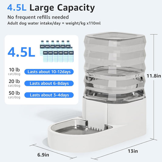 Gravity 4.5L Dog and Cat Water Bowl Dispenser, Automatic Stainless Steel Dog Water Bowl, 100% Bpa-Free, Self-Filling Large Capacity Pet Water Feeder for Dogs and Cats